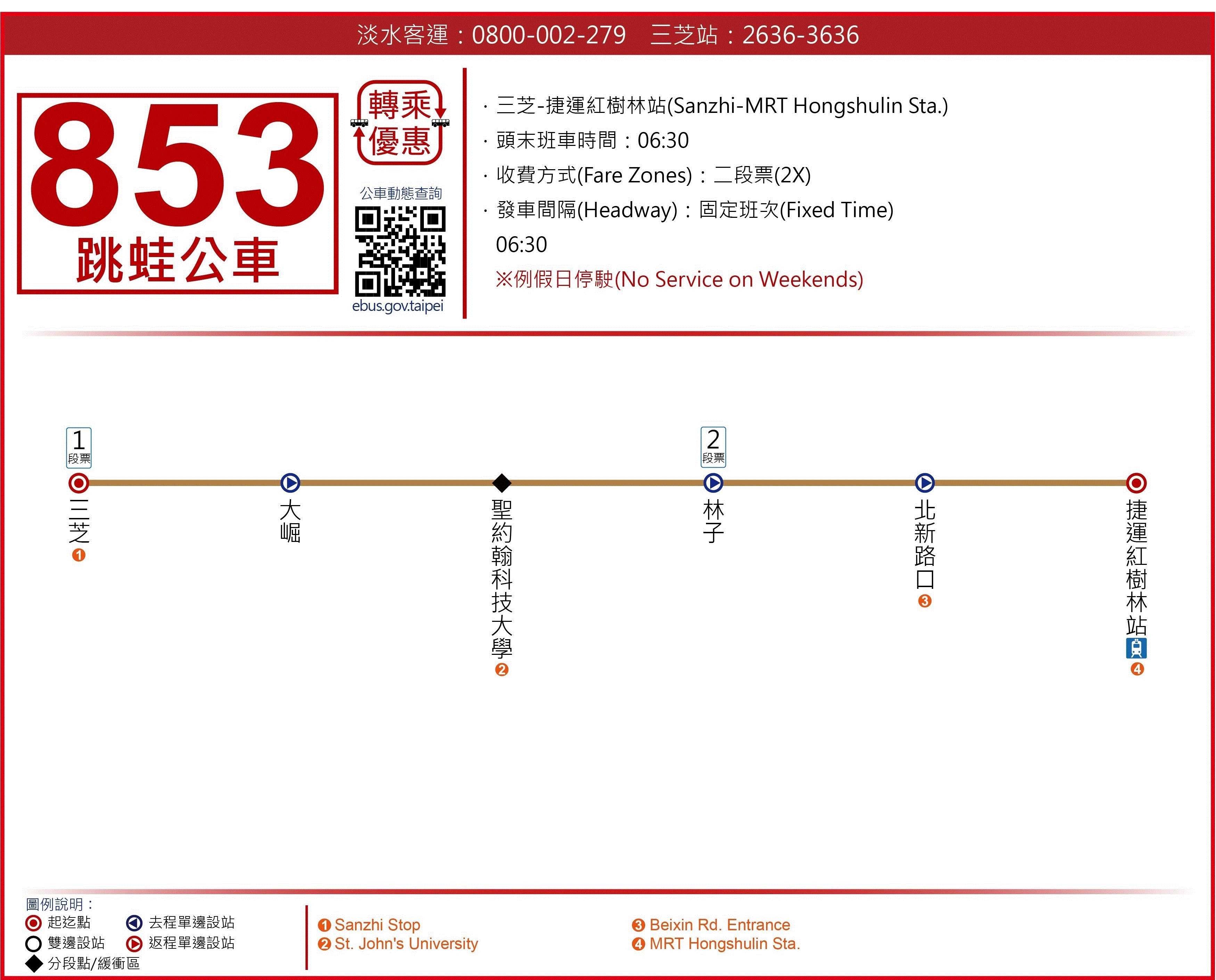 853三芝→捷運紅樹林站